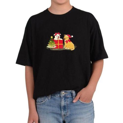 [에이치플러스몰]반팔라운드 친구 PUPPY 크리스마스 선물 트리 징글벨 전사이즈