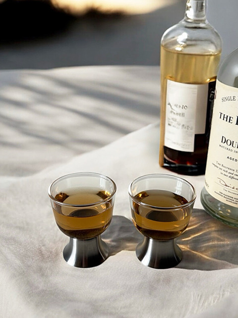 미드센츄리 예쁜 실버 미러 특이한 고블렛 소주잔 2P 선물 세트