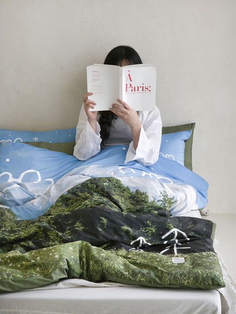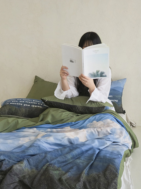 파우더리 사계절 부드러운 이불+패드+베개커버 기숙사 차렵이불 세트 슈퍼싱글 퀸