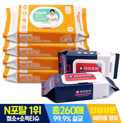 [40매4팩+50매2팩] 간편하게 뽑아쓰는 청소 전용티슈+소독용 에탄올 소독티슈