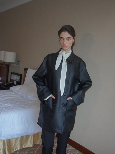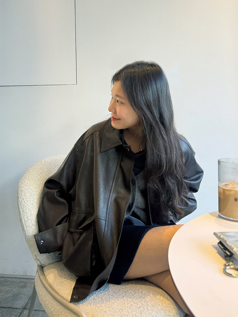 [드로우핏 우먼](타임스퀘어점패션관)레더 오버핏 싱글 블레이저 [2COLOR]