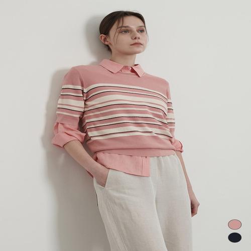 [인디안]인디안 면혼방 잔스트라이프 카라 니트 MITBS5M2321