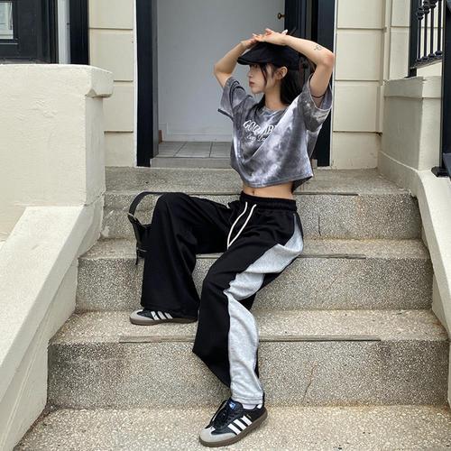 일자 9부 트레이닝 와이드 팬츠 DHH1 흐집업 트레이닝 흐 여성 청바지