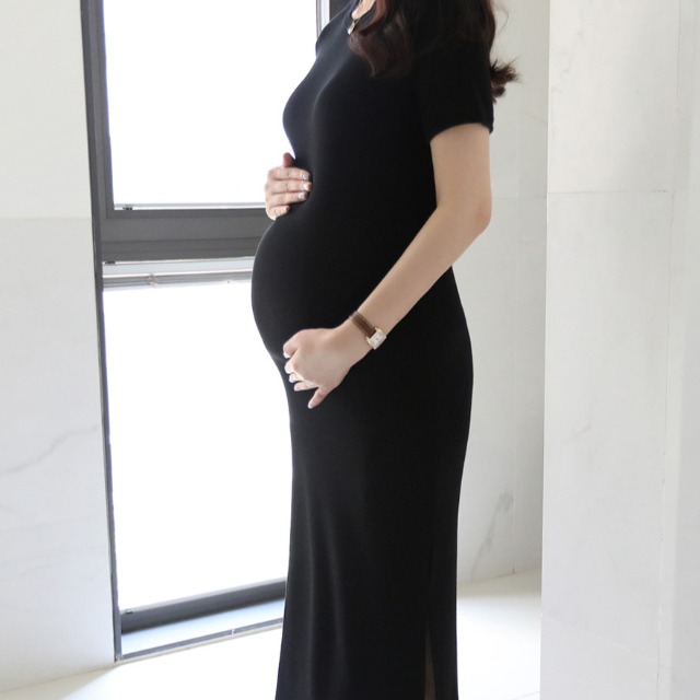 여성 여름 하객룩 임부복 롱원피스 반팔 원피스