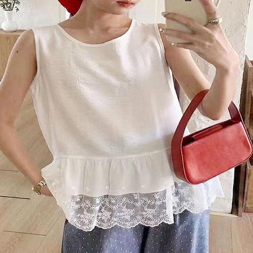 [하젤]카트린느 레이스 나시탑 면블라우스_M4709