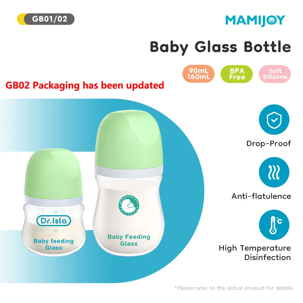 MAMIJOY 1PCS 신생아 수유 병 90ML/160ML 아기 병 유리 병 방귀 방지 우유 수유 병 유아 BPA 무료