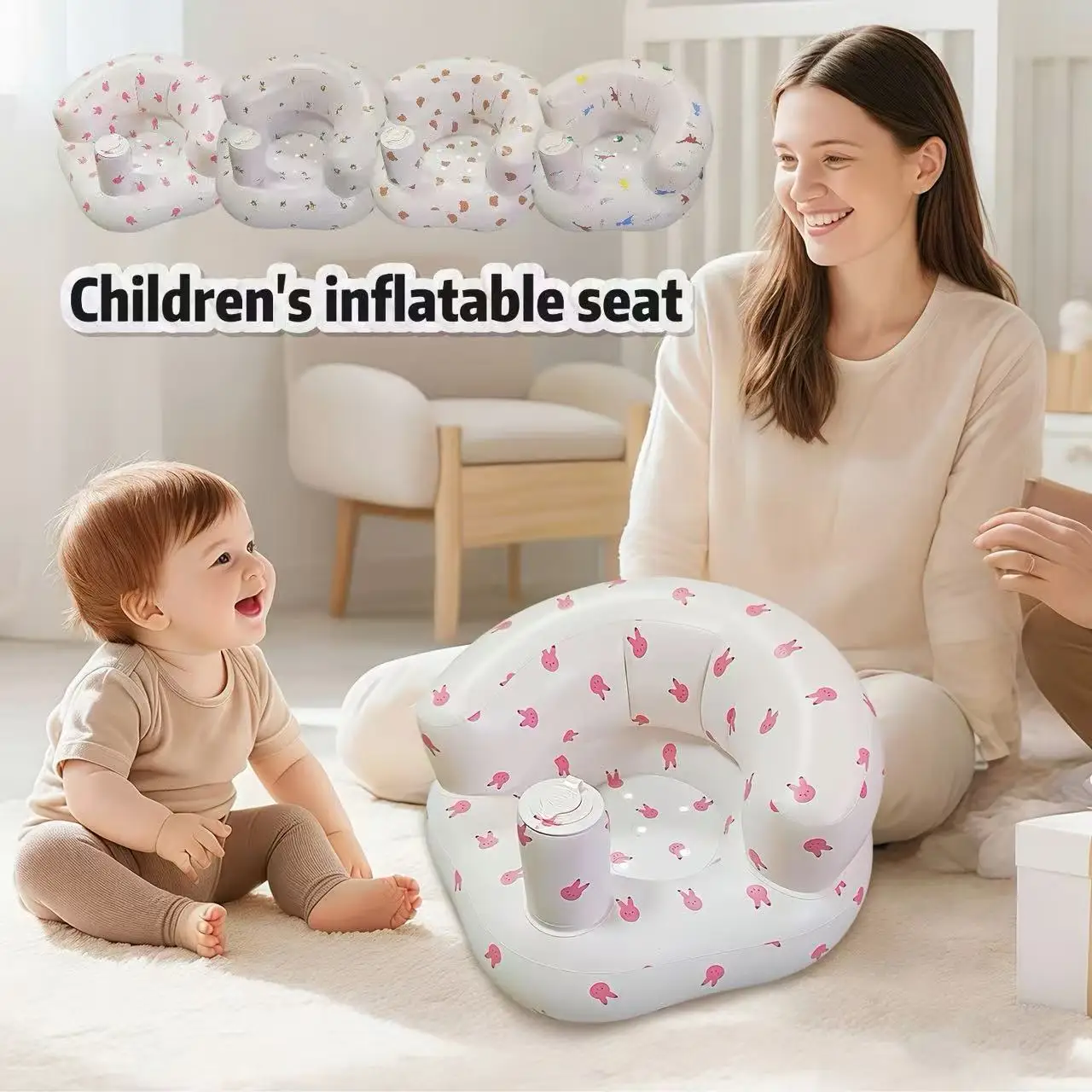 1개, 귀여운 프린트가 있는 어린이용 에어 시트, 조절 가능한 에어 펌프 포함, 휴대용 빠른 공기 주입 쿠션, 내구성 있는 PVC 소재, 앉는 법을 배우는 유아, 수유, 캠핑에 적합, 가족 여행 필수품으로 완벽한 선택