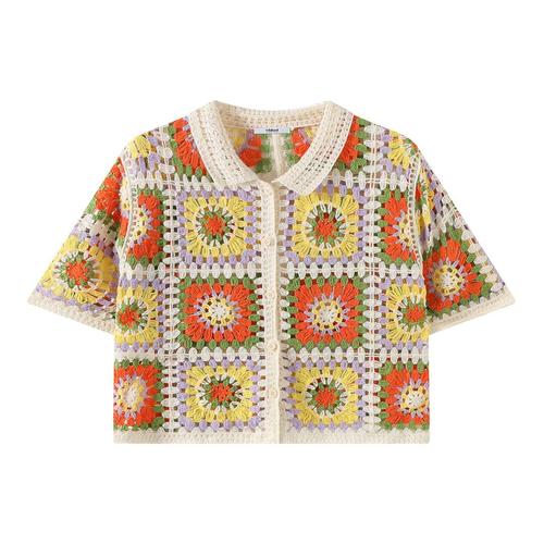 [위시드]유니크 뜨개 자수 반팔 가디건 (WIDBCD006)