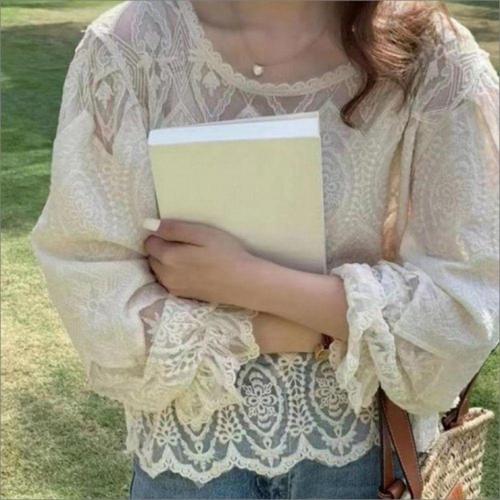 시스루 자수 여성 퍼프 레이스 블라우스 WFLLN2U