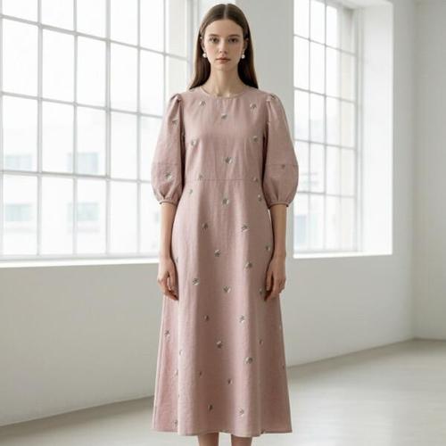 [리블리크]디벨 자수 벌룬 롱 원피스_RF1OP002