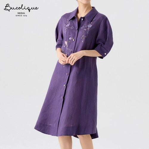 [비꼴리끄]면 자수 원단 V넥 원피스 B262WO3170