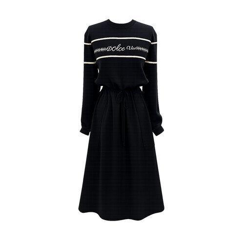 [옷자락]여자 스퀘어넥 자수 패턴 허리스트랩 롱 원피스
