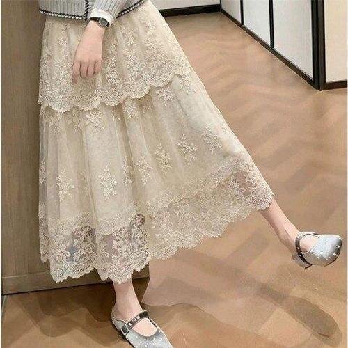 [아리엘스타일]레이스자수 로맨틱무드 롱스커트 그랑떼레이스스커트