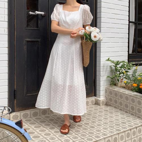 [GGPX]러블리 도트 자수 패턴 반팔 롱 원피스 (GQBOW009D)