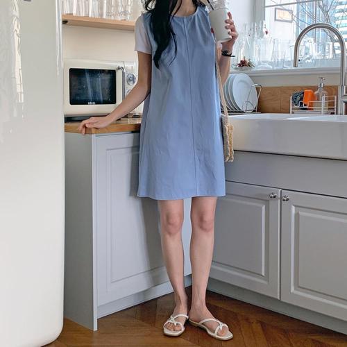 [다잇템]여자 슬릿 스트랩 슬리브리스 쁘띠 자수 원피스