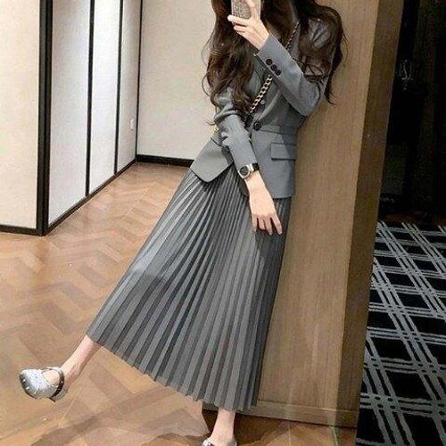 [아리엘스타일]슬림자켓 플리츠롱스커트 클래식투피스 소유와투피스