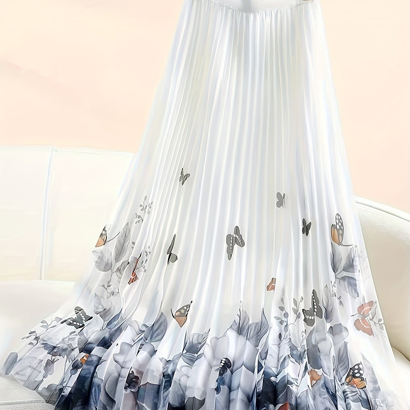 TEMU 여성 플리츠 메쉬 플로럴 패턴 스커트, 봄 A라인 롱 스커트, 아름다운 드레이프링감과 몸매에 어울림