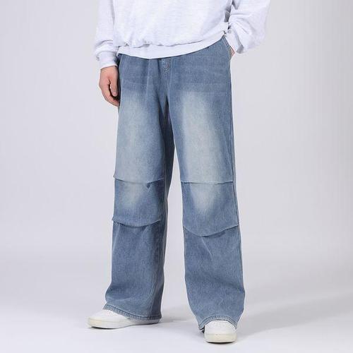 다올샵 (기모안감)키별 기장선택 벌룬핏 절개 와이드 데님팬츠