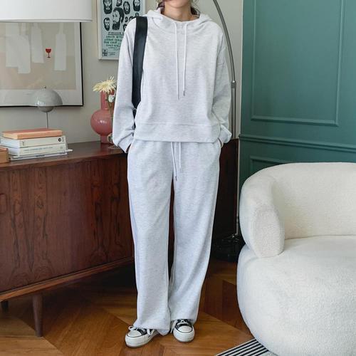 [옷자락] 여자 절개 디테일 포켓 후드 밴딩 팬츠 세트
