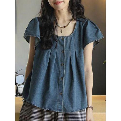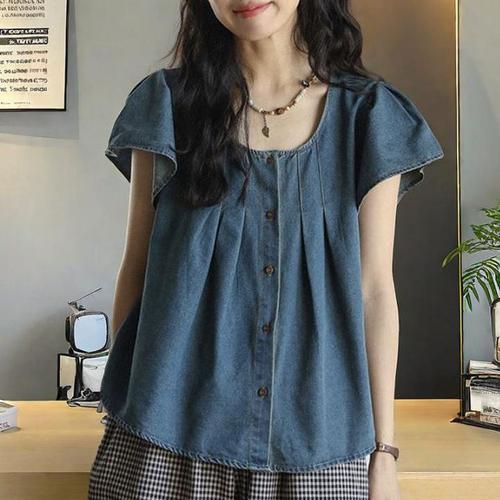 제리타 데님 반팔 블라우스