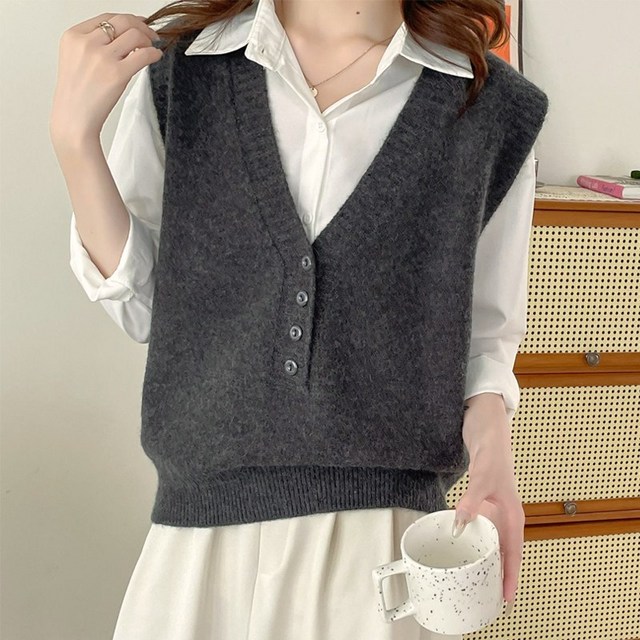 여성 니트조끼 기본 브이넥 조끼 봄 여름 가을 겨울 사계절 여자 단체복 유니폼 빅사이즈 베스트 XS~4XL