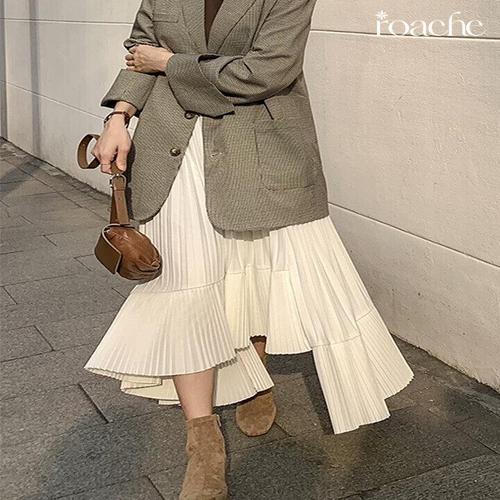 [헬렌]로아체 롱스커트 플리츠 주름 치마 플레어 밴딩 허리