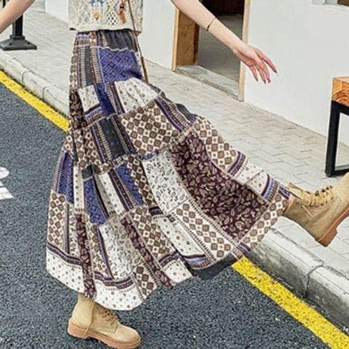 [오너클랜]인기상품 패턴 여성 플레어 스커트 밴딩 여성 롱 스커트 치마 주름 [WFLMZ31_260419]