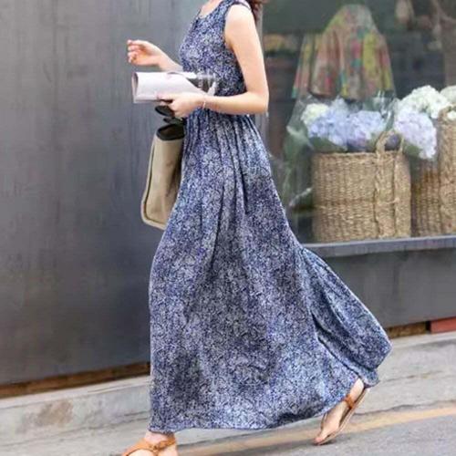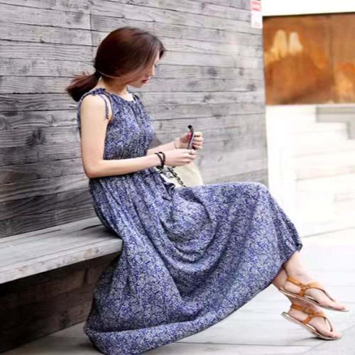 [셀럽하우스]바캉스룩 GUVD6358 주름 포인트 나시 일자핏 롱원피스