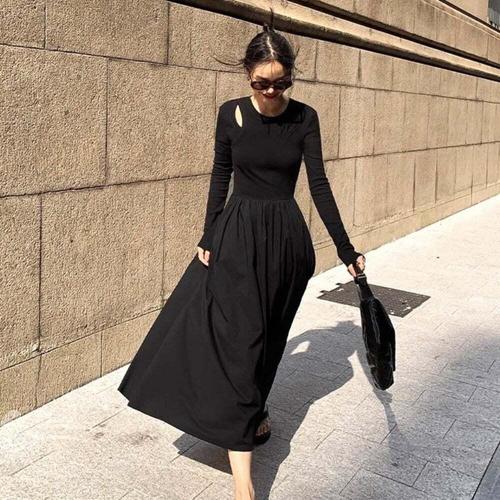 [셀럽하우스]여성 MCTO6732 슬림라인 어깨 포인트 하체커버 주름 롱원피스