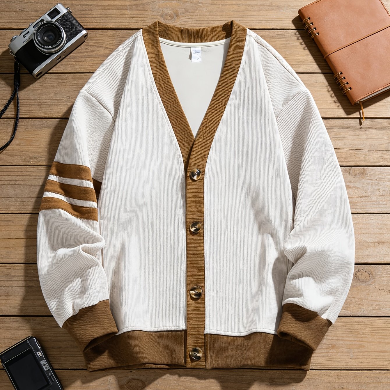 TEMU 새로운 봄 가을 남성용 브이넥 니트 가디건 코트, 레트로 심플 올매치 스타일, 데일리 출퇴근 및 데이트 의상, 남자친구 생일 선물