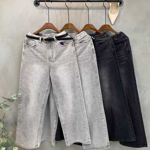 2기장 5사이즈/ 너소 YKK지퍼 워싱 밴딩 일자 와이드 청 바지 2color