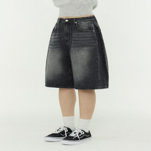 [진마니아]사이드 핀턱 포인트 와이드 5부 하프데님 남여공용 (블랙)