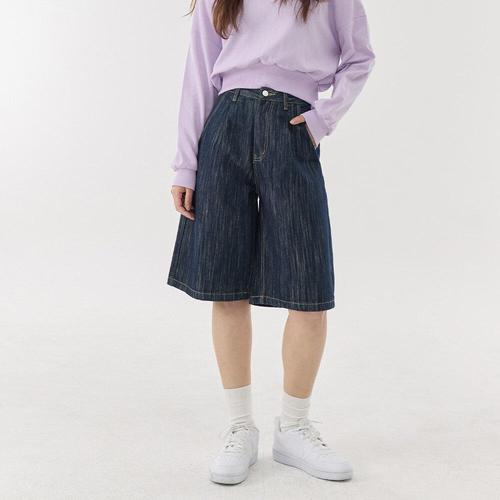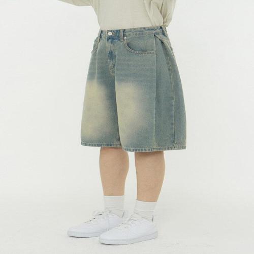 [진마니아]사이드 핀턱 포인트 와이드 5부 하프데님 남여공용 (중청)