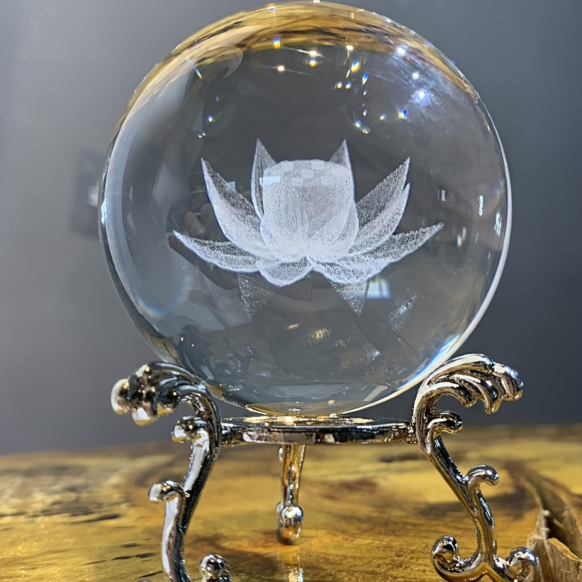 TEMU 1개 우아한 연꽃 유리 구체 - 2.36인치(60mm) 레이저 각인 3D 구형 볼, 스탠드 & 체인 포함, 투명 연꽃 돔 장식용, 홈/오피스/제단 장식, 명상 장식, 결혼식/선물 - 손 모양 디자인