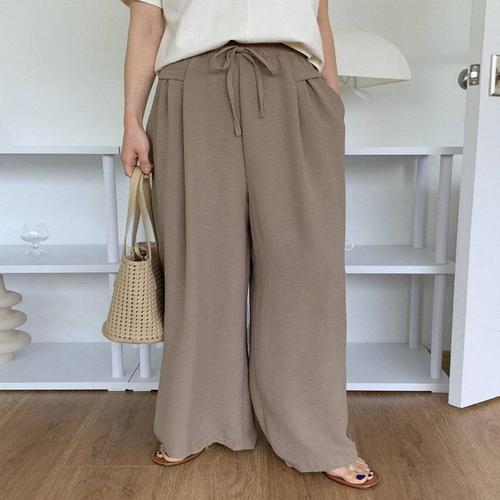 [옷자락]여자 허리밴딩 찰랑 일자 와이드핏 팬츠