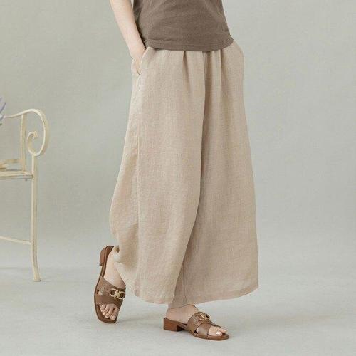 [에이치플러스몰]여성 와이드팬츠 여름바지 찰랑바지 허리밴딩 롱숏 2가지 데일리 캐주얼팬츠 얇은바지