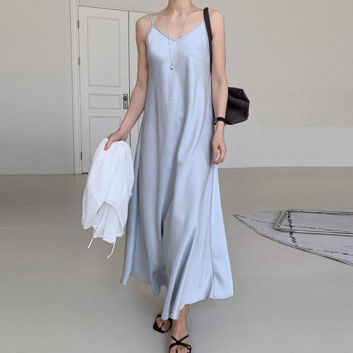 [휴드]새틴 서스펜더 여성 V넥 원피스