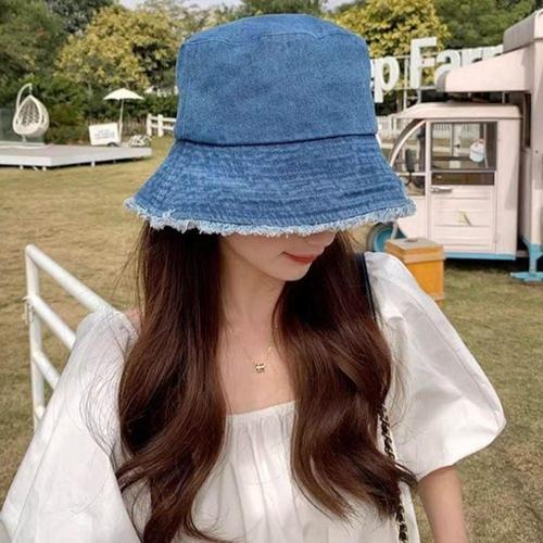 얼굴 버킷햇 데님벙거지 작아보이는 찢청 빈티지 여름 WFKBXN8