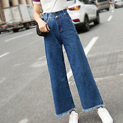 여성 하이웨스트 와이드 9부 청바지 일자 데님팬츠 빅사이즈