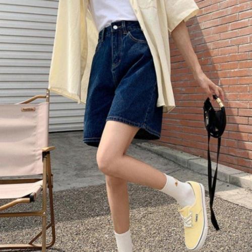 여성용 여름 하이웨스트 스트레이트핏 데님 숏팬츠 청바지 WFLLNCX