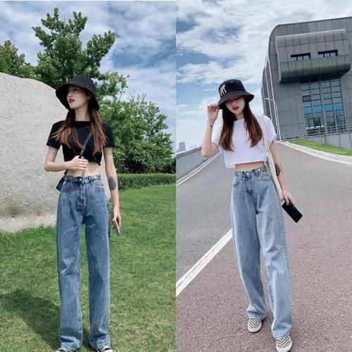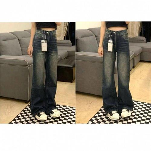 여자 와이드 핏 청바지 연청 하이웨스트 데님팬츠 여름 슬림 워싱 빈티지 일자 슬리퍼 BE2