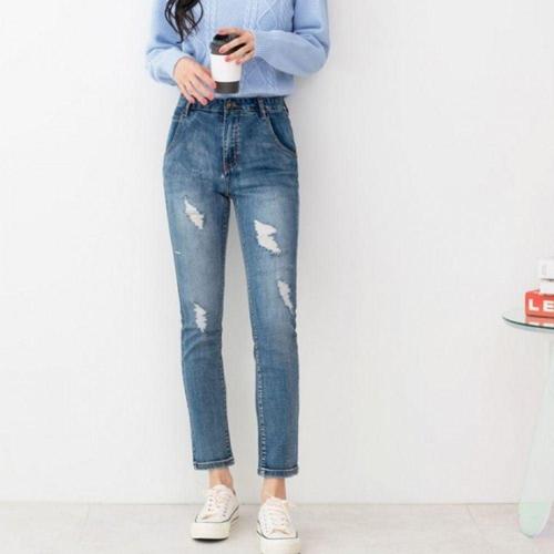 [HYIJO334_4B]여성 청바지 얇은 하이웨스트 밴딩 청바지