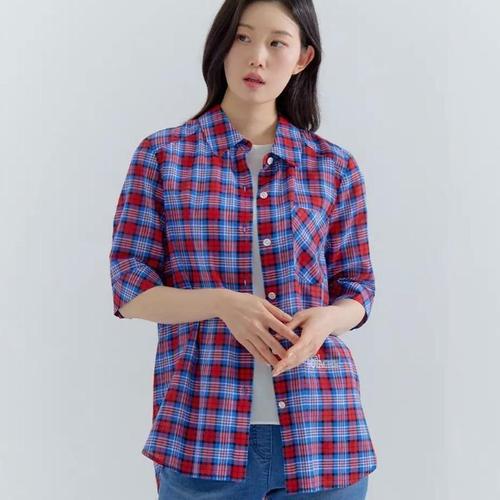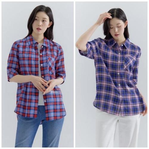 여성 루즈핏 네모 체크 카라 반팔 셔츠 2컬러 오버롱 남방 긴팔 봄남방 여대생룩 무늬