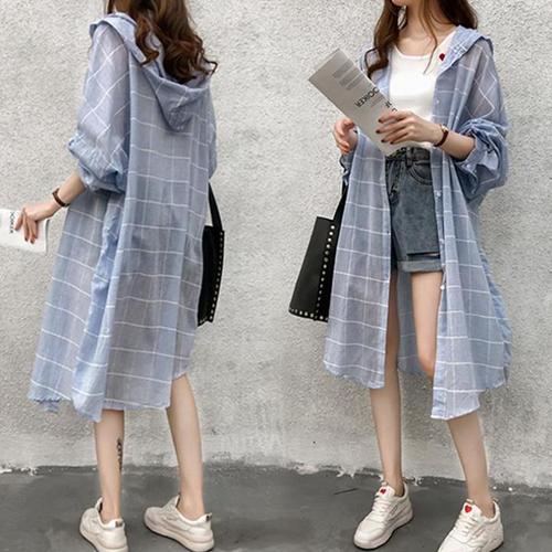 LD-570 롱후드셔츠체크 캐쥬얼 여성패션 여성캐 의류 여자