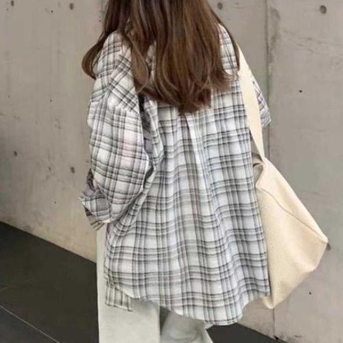 여성 루즈핏 체크 셔츠 이너용 롱소매 기본템