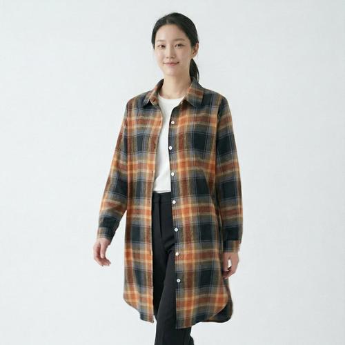 [오너클랜]인기상품 여성 캐주얼 겨울 기모 체크 남방 따뜻한 롱 체크셔츠 [WFKPP79_260411]