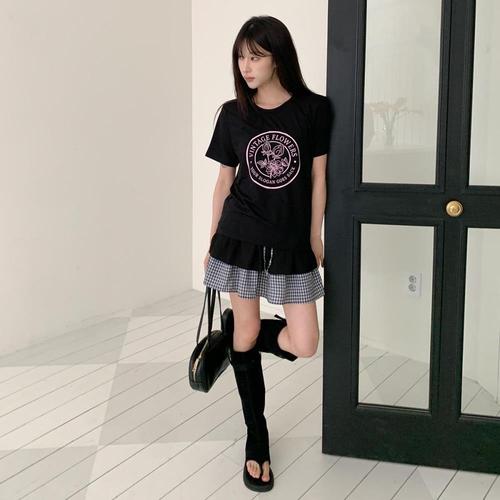 [옷자락] 여자 체크 레이어드 캉캉 밴딩 미니스커트