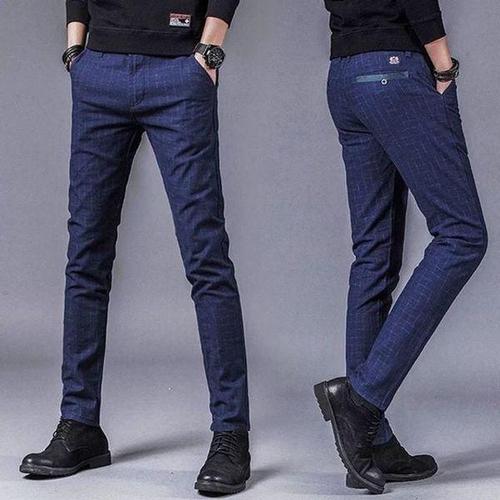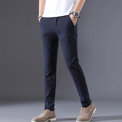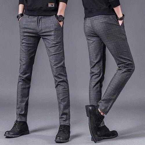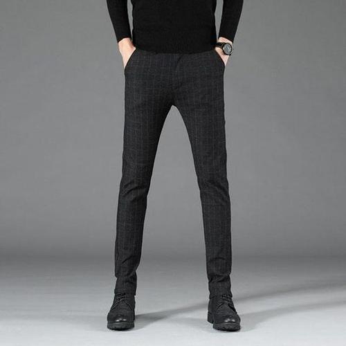 [에이치플러스몰]일자 슬랙스 남자 슬림 정장 바지 체크 스판 밴딩