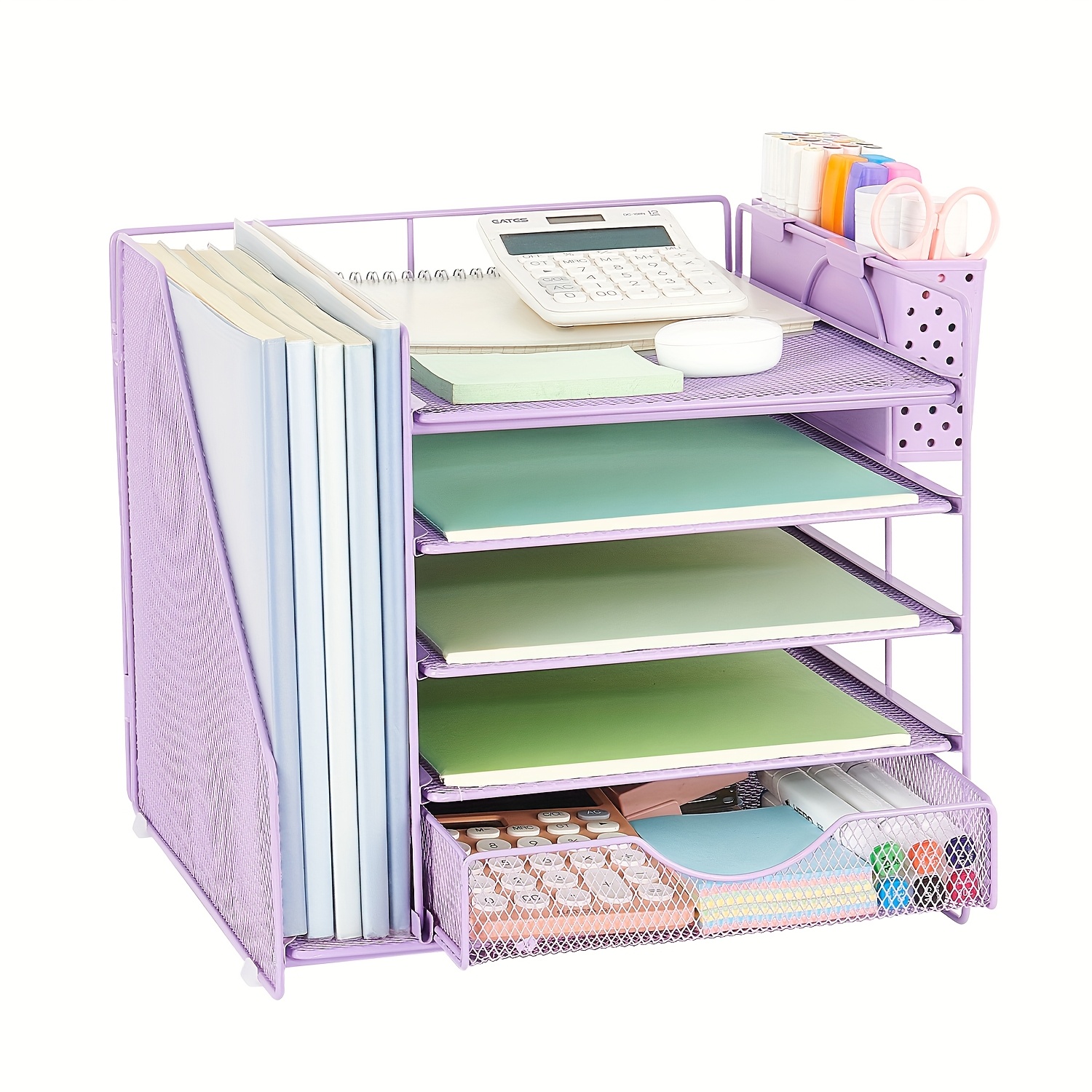 TEMU 모던 스타일 그리드 책상 파일 랙 1개, 5단 탁상용 수납함, 사무실용 다기능 책상 정리함, 파일 폴더 랙 및 홀더, 파일 보관 가능, 직장인용 액세서리