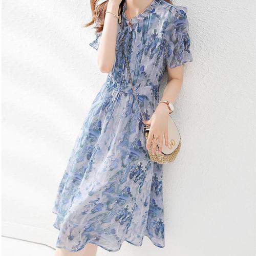 여름 새로운 여성 V 넥 꽃 프린트 드레스 루즈 캐주얼 반소매 편안한 멀티 컬러 드레스 새로운 패션 Hight Quietly